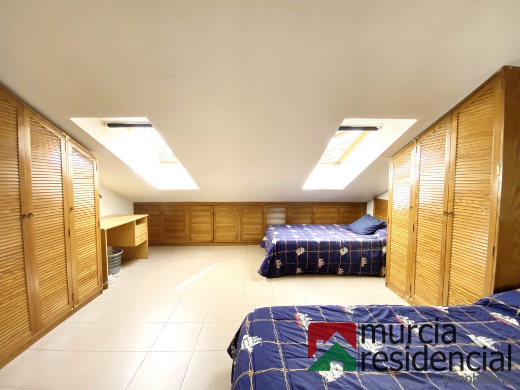 Se vende amplia casa tipo chalet adosado con garaje privado, buhardilla, tres accesos y zonas comunes con piscina, ubicado en el tranquilo barrio de San Antonio, una zona residencial muy demandada de Murcia, situada entre avenida Juan Carlos I y avenida de los Pinos, junto al centro de ocio Zigzag.