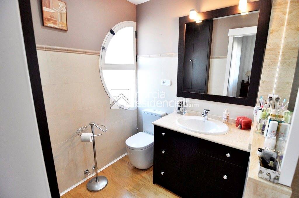 La vivienda goza de muy buenas calidades: suelo en parquet, ventanas de aluminio lacadas en blanco con cristales tipo climalit, puertas lacadas en blancos, climatización en toda la casa, mosquiteras y rejas en todas las ventanas, jardin con piscina , etc..