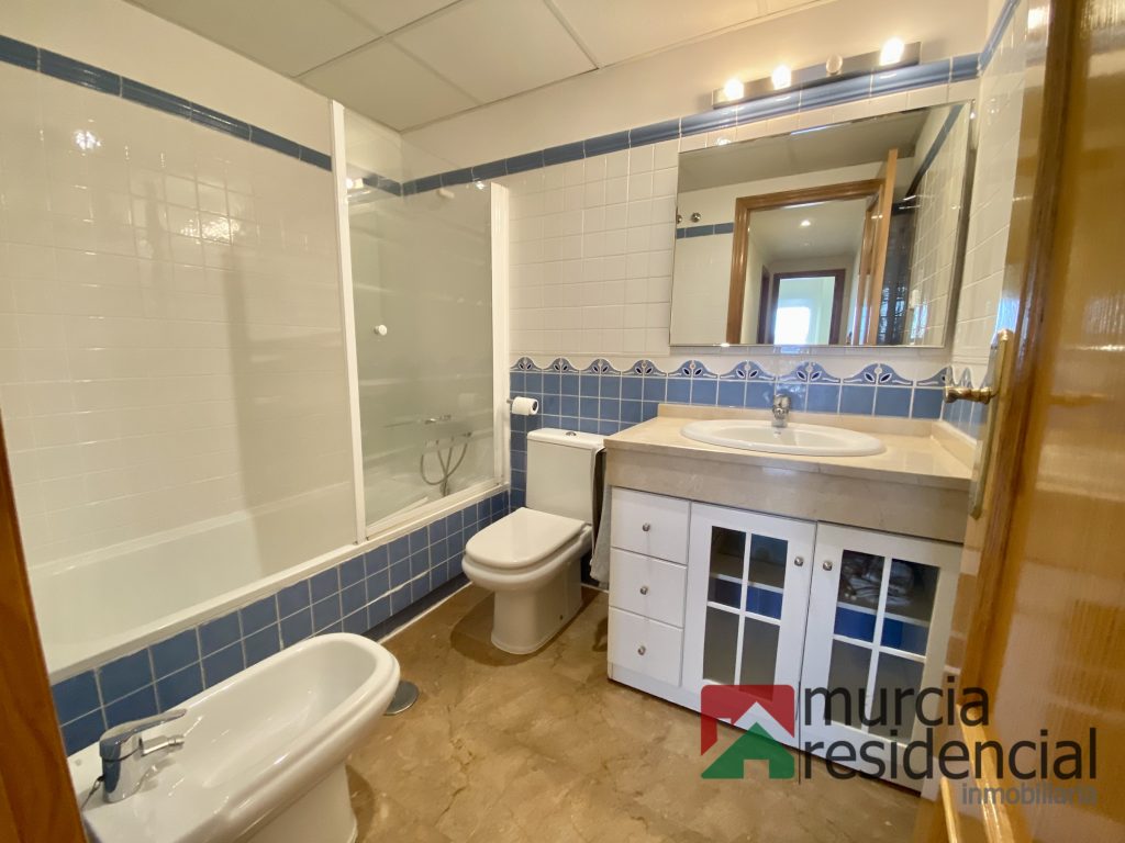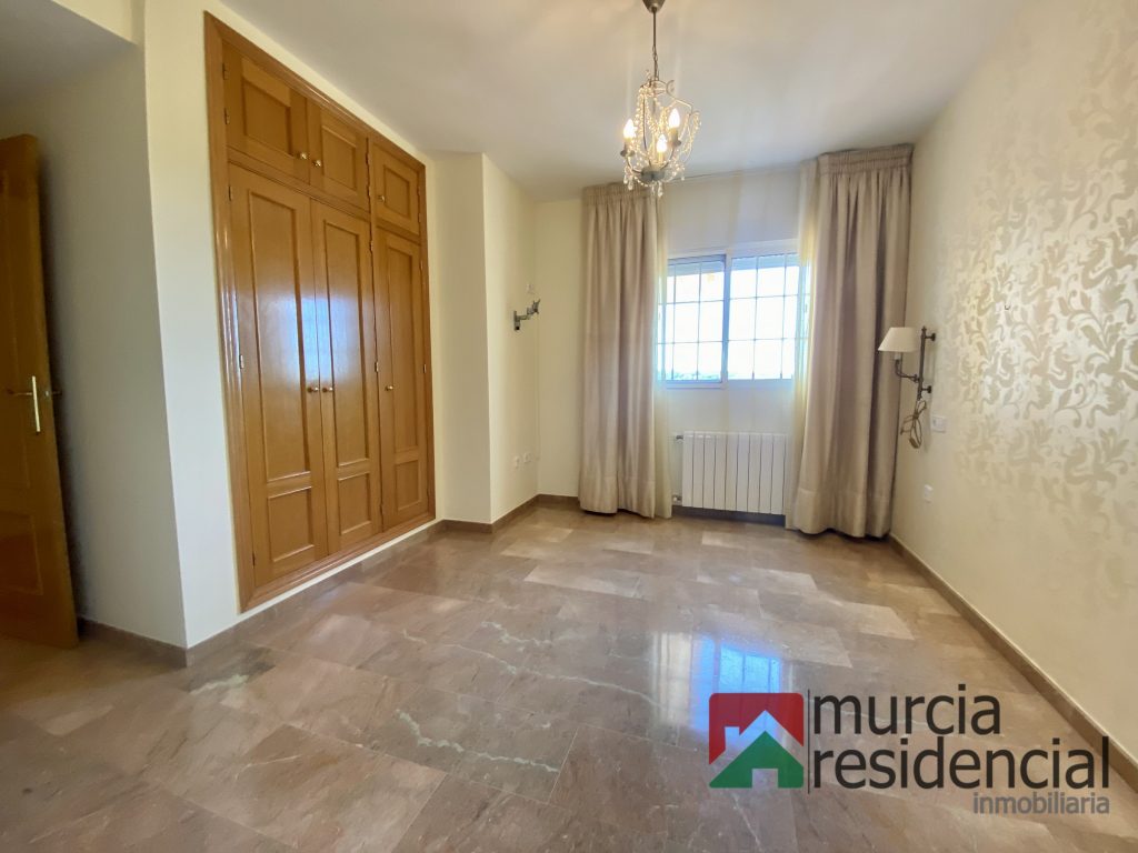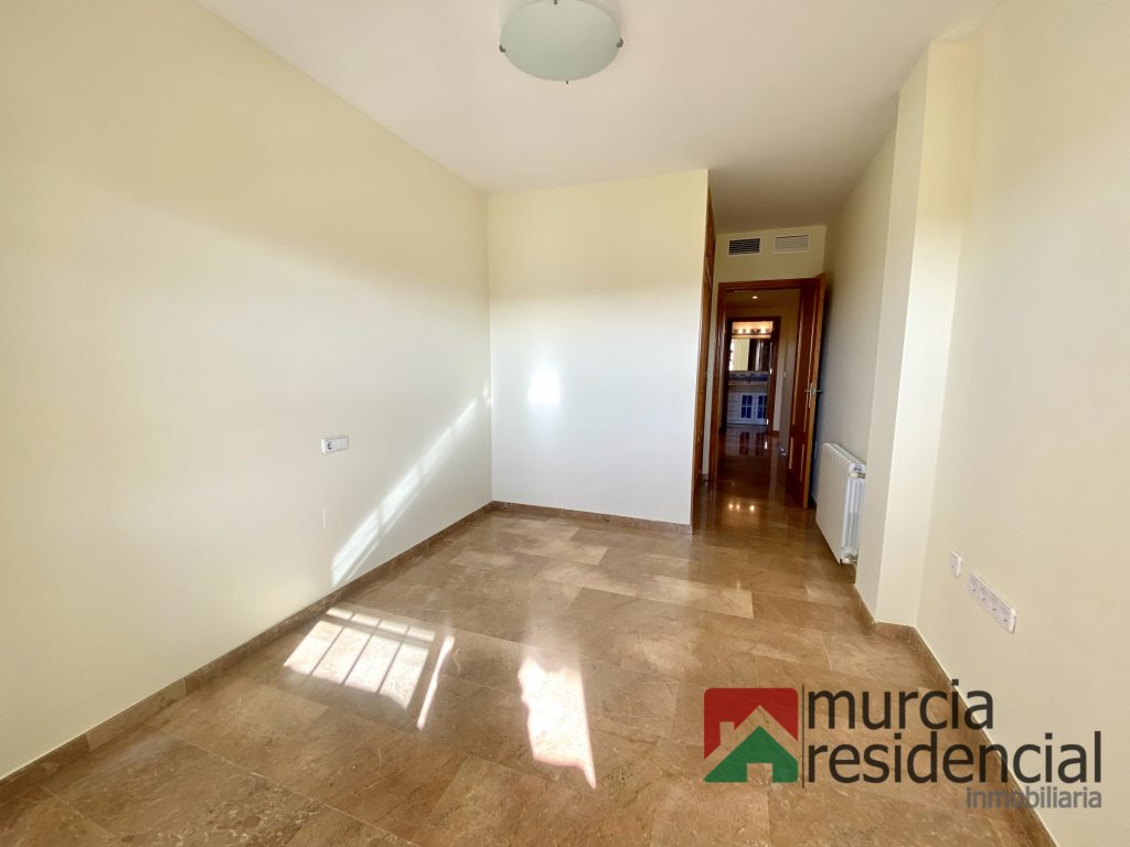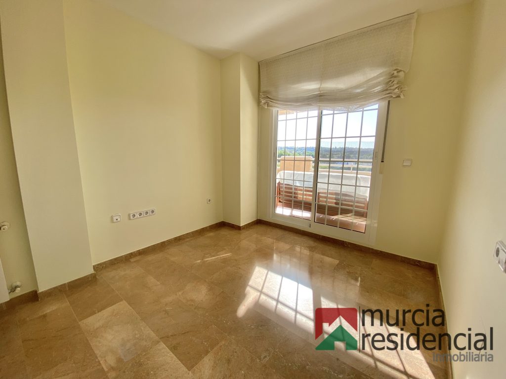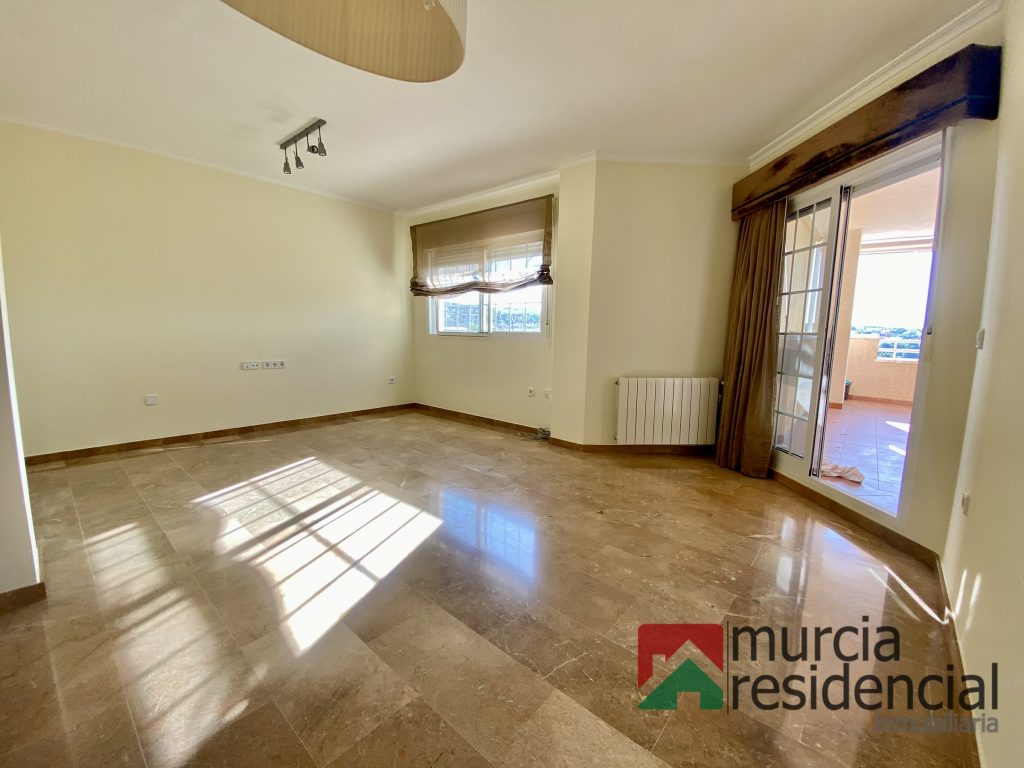 Se alquila piso de lujo en Altorreal, se compone de tres amplios dormitorios, todos con armarios empotrados (forrados y con cajoneras) y el principal además con cuarto vestidor; dos baños completos (uno de ello dentro del dormitorio principal), amplio salón comedor y cocina equipada completamente, ambos con salida directa a una gran terraza con espectaculares vistas al campo de golf y todo orientado a levante (este). La vivienda goza de excelentes calidades: – suelos de mármol, paredes lisas (piso recién pintado), equipo de climatización por conductos (frio/calor), calefacción por radiadores y caldera de gas natural, ventana de aluminio lacado con palilleria y mosquiteras, puerta de seguridad de accesos, toldos en terraza (nuevos), cocina equipada con electrodomésticos. Se incluye una plaza de garaje , posibilidad de alquilarlo con una segunda plaza de garaje y/o trastero. El piso se ubica en residencial privado, que dispone de amplias zonas verdes privadas comunitarias con vistas directas al campo de golf, piscina, gimnasio y sauna. Se requiere solvencia acreditada y contrato estable laboral. No se aceptan perros. Visítela sin compromiso o solicite más información: Murcia Residencial Inmobiliaria.